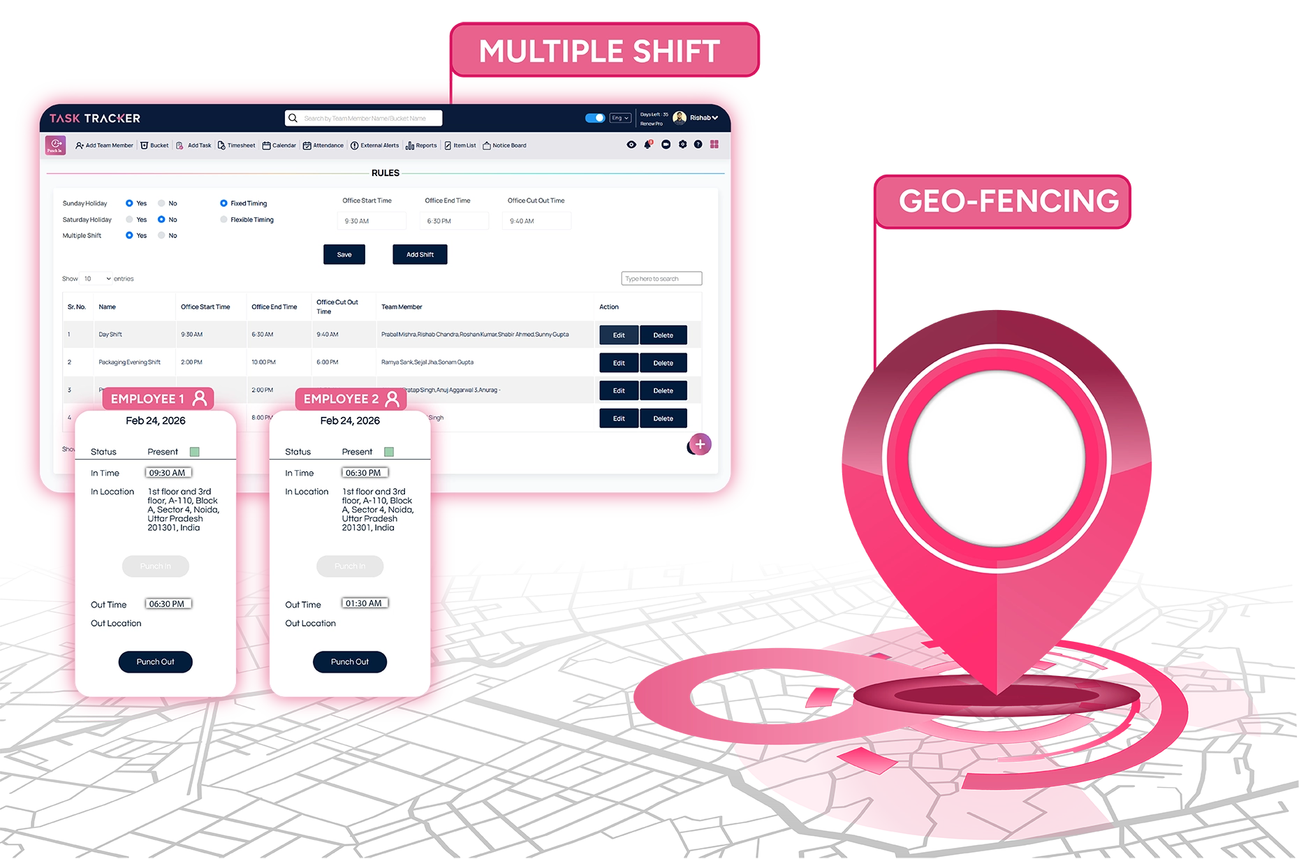 Tracker Suite provides Task tracker; a powerful attendance management system with TAVI intelligence to increase visibility of the workforce, shift tracking and ensure accurate time recording. Our employee attendance tracking software supports the accuracy of payroll and compliance in controlling payroll and operational discipline across the growing teams.