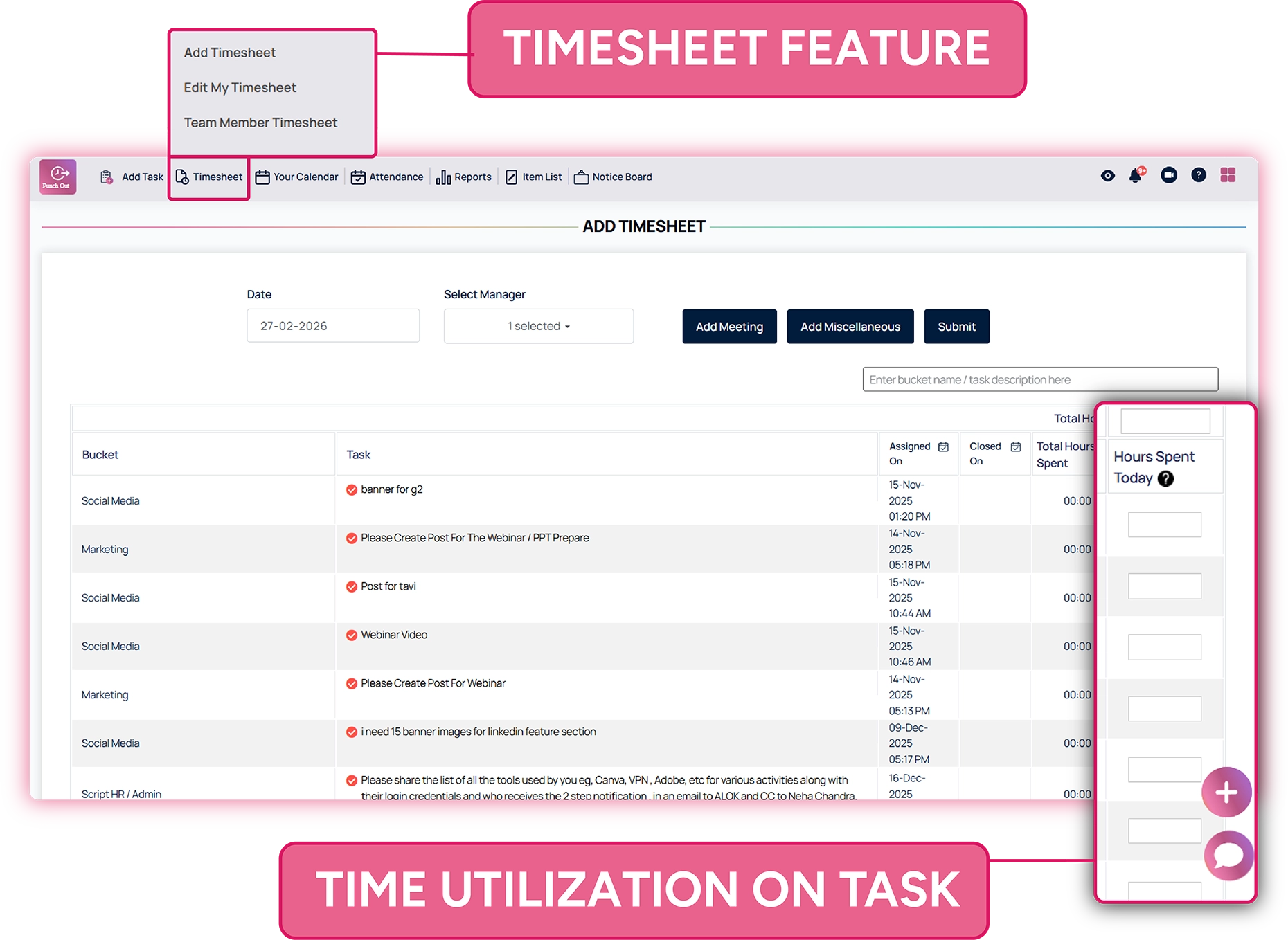 Structured time intelligence adds to accountability in any environment. Empower operational control in any industry through employee timesheet management software. That helps management to aligns reported hours with tasks, approvals, and performance visibility and manage everything under a single platform of task tracker.